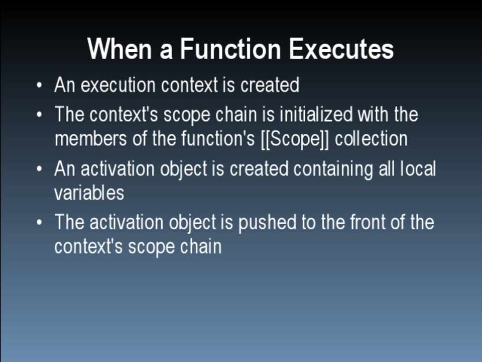 • The context's scope chain is initialized with the members of the function's [[Scope]] collection