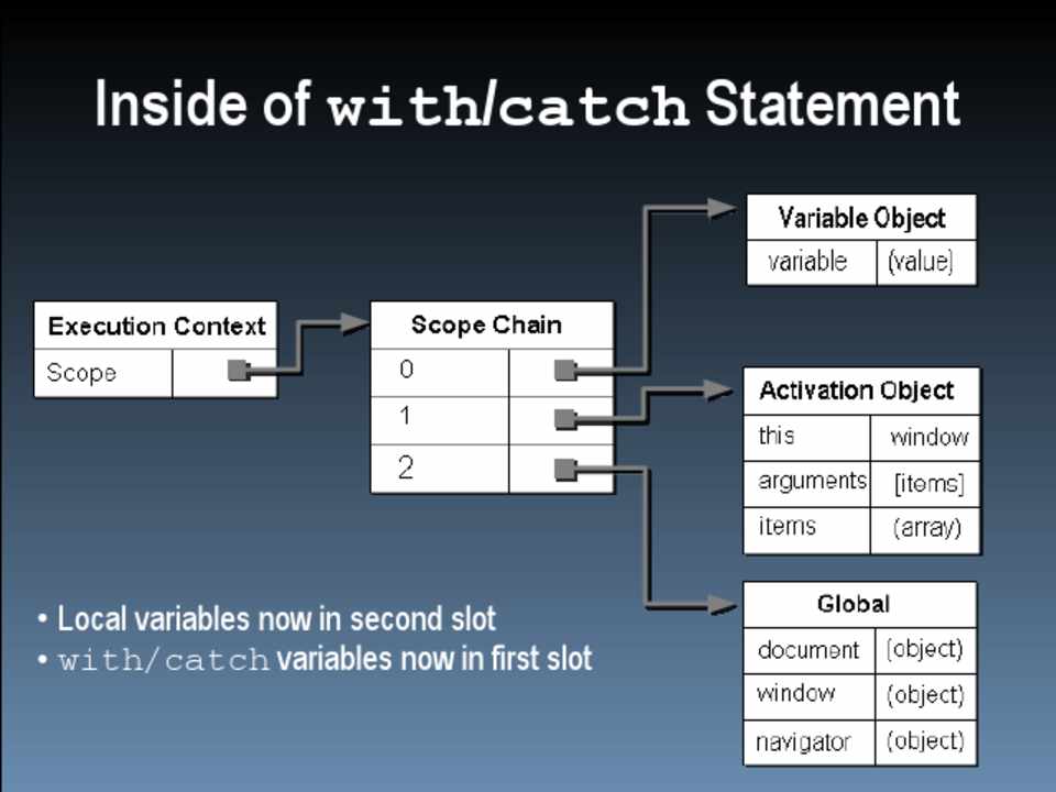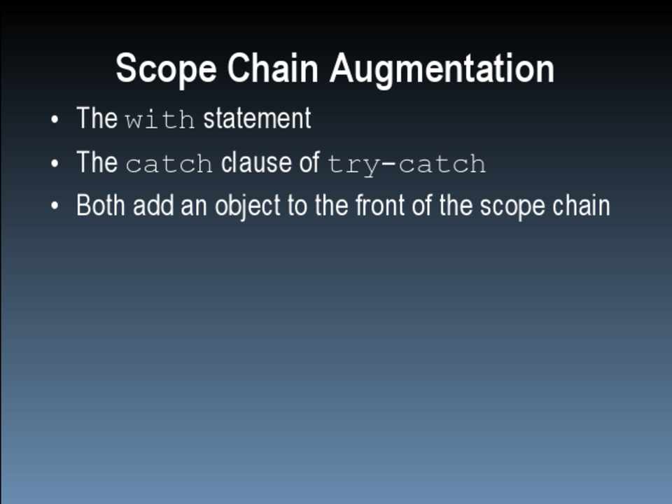 • The with statement • The catch clause of try-catch • Both add an object to the front of the scope chain