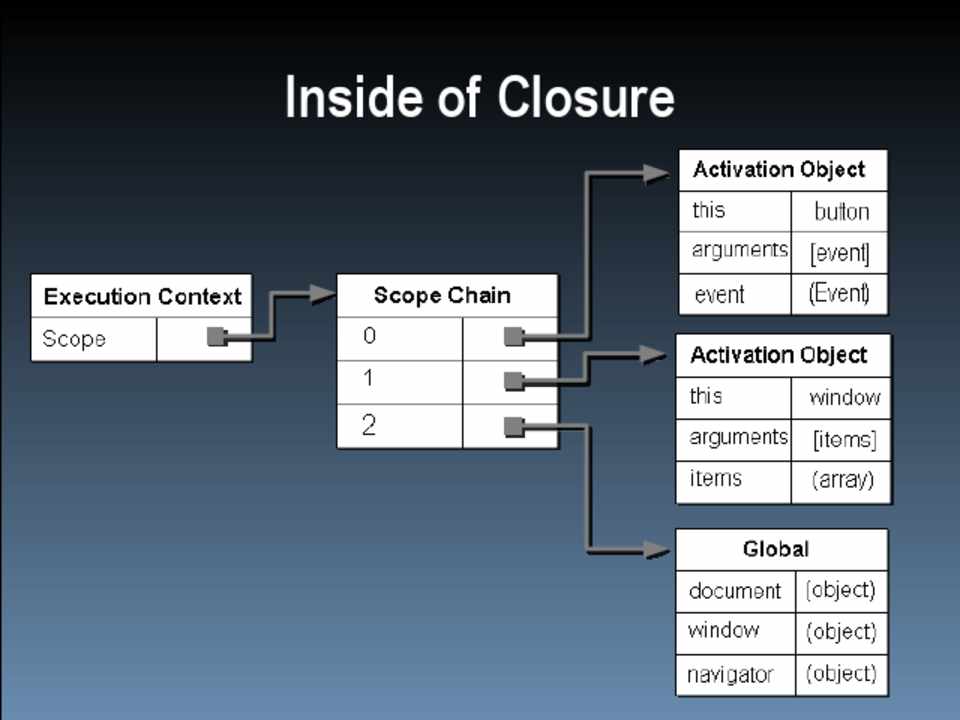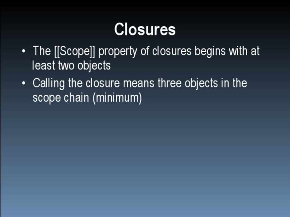 • The [[Scope]] property of closures begins with at least two objects