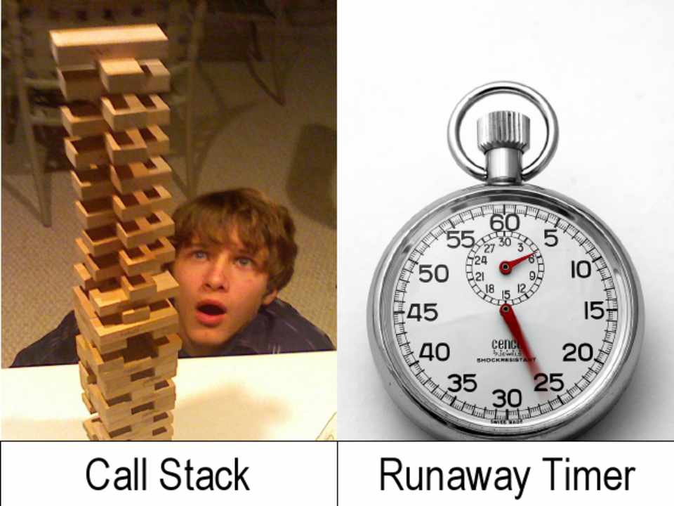 • Too much recursion • Long-running loops