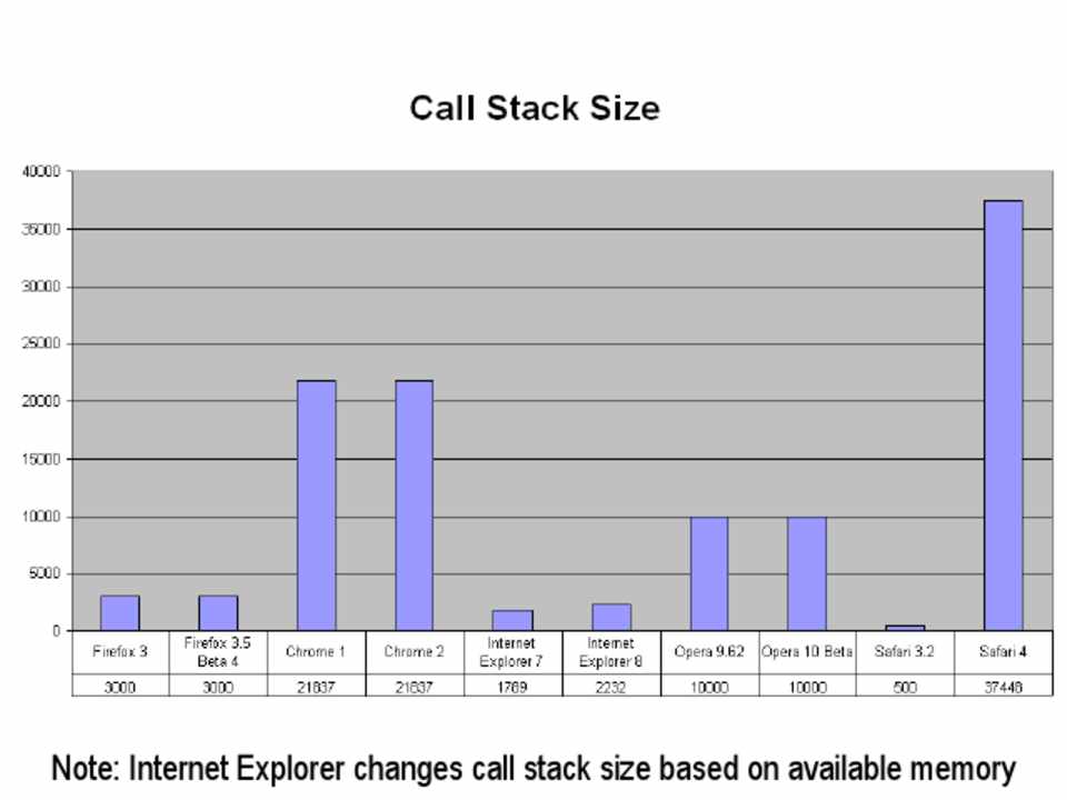 Note: Internet Explorer changes call stack size based on available memory