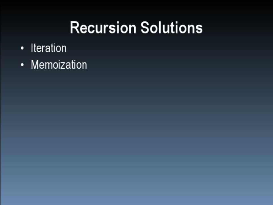 – Consider iteration or memoization