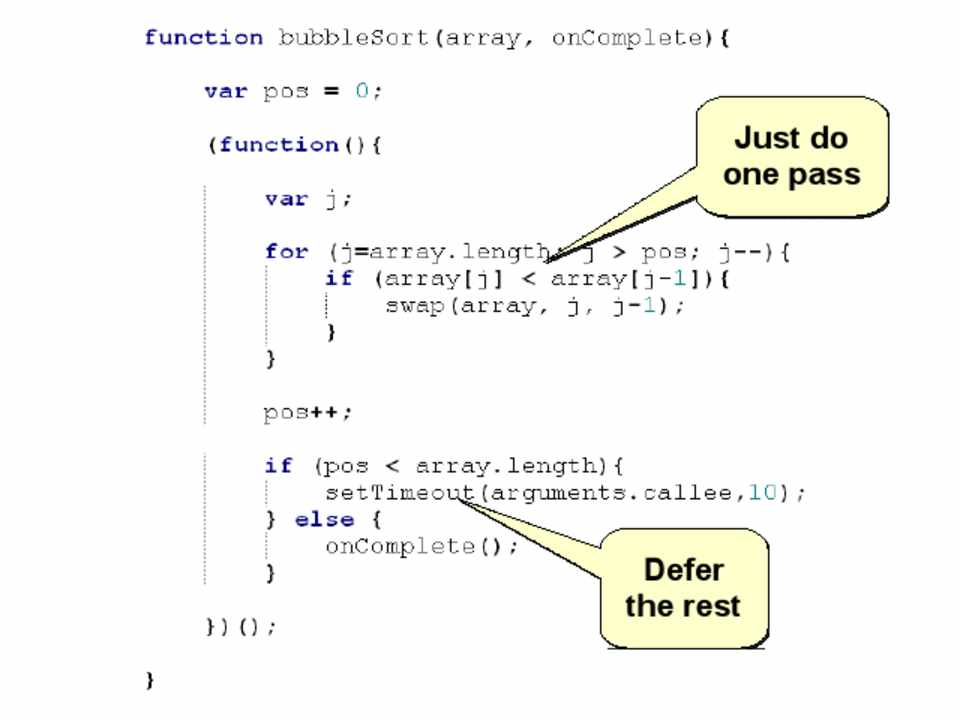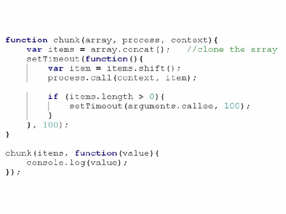 – Keep small, sprinkle setTimeout() liberally if needed