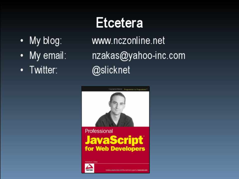 www.nczonline.net nzakas@yahoo-inc.com @slicknet