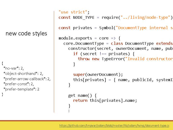 ESLint rules to enforce some of these things, including one I didn’t talk about, using template strings instead of concatenation.