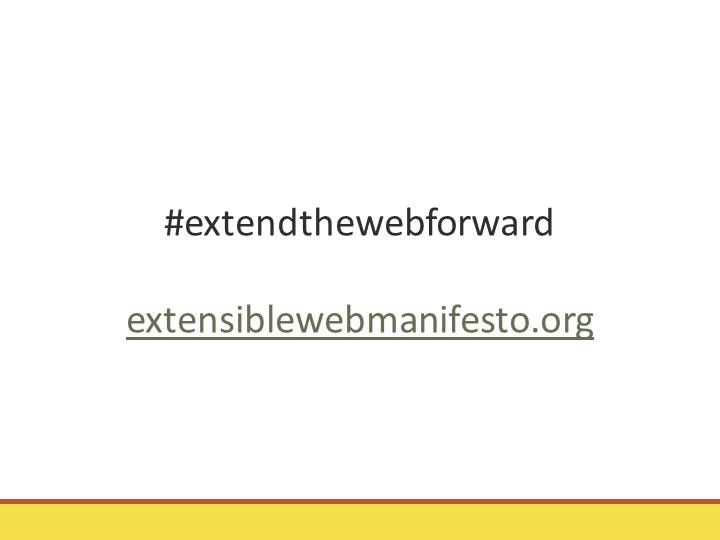 The foundational reason the browser has so much exciting stuff going on connected to JavaScript is this document, called the “extensible web manifesto.” It’s essentially saying that the browser has too much C++ magic in it, and instead we should explain all the magic so that JavaScript code can do very low-level stuff at every point in the browser stack. We’ll see a bunch of examples of that coming up.