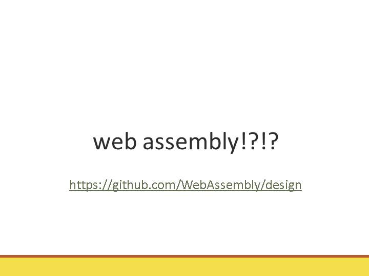What is this web assembly business? Well… we don’t really know yet! The basic idea is to have some kind of second language in the browser VM, alongside JavaScript. It would be a compile target for languages like C++. Or maybe also languages like Java? But there is a lot of speculative talk. In some senses it’s basically just asm.js, but easier to compress and parse? But then, people are talking about adding threads and shared memory to it, maybe? There is a lot of effort going in to making sure it shares the same VM as the JavaScript VM, but how does that work exactly? Can wasm call web APIs? What if they return complex JavaScript objects, like a promise or a Map? I have a lot more questions than answers, but there’s serious implementer resources going toward this second language in our VMs, and it’s worth keeping an eye out. We’ll have to see.