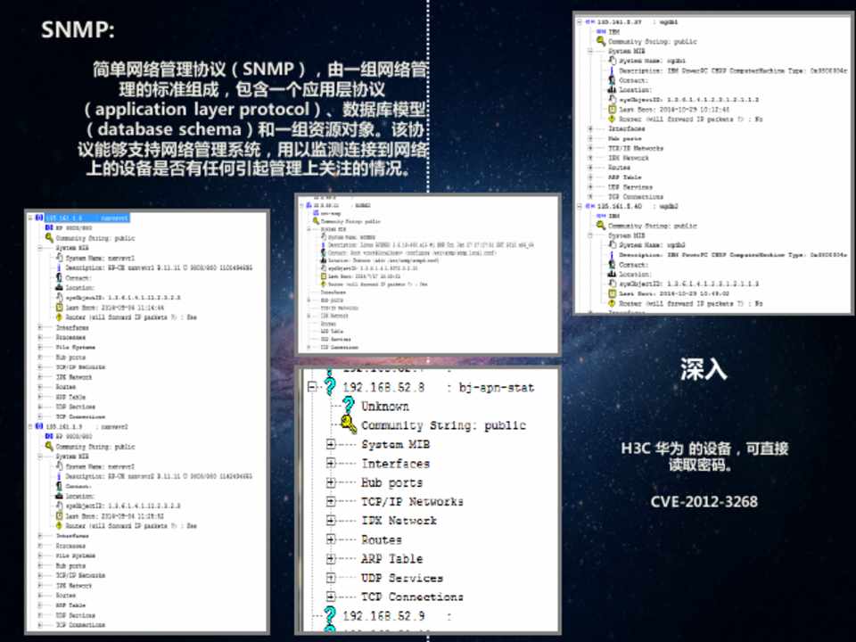 简单网络管理协议(SNMP),由一组网络管 理的标准组成,包含一个应用层协议