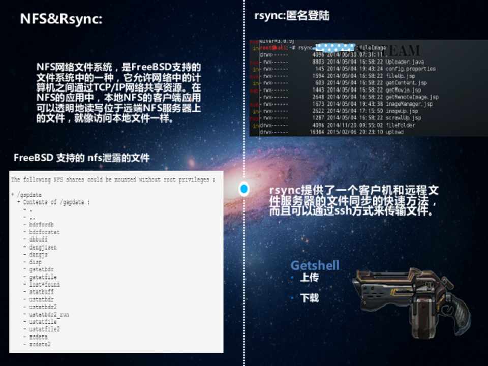 NFS网络文件系统,是Fr eeBSD支 持的 文件系统 中的一 种,它 允许网 络中 的计 算机之间通过TCP/IP网络共享资源。在 NFS的 应用中, 本地NF S的 客户端 应用 可以透明 地读写 位于远 端NF S服务 器上 的文件,就像访问本地文件一样。