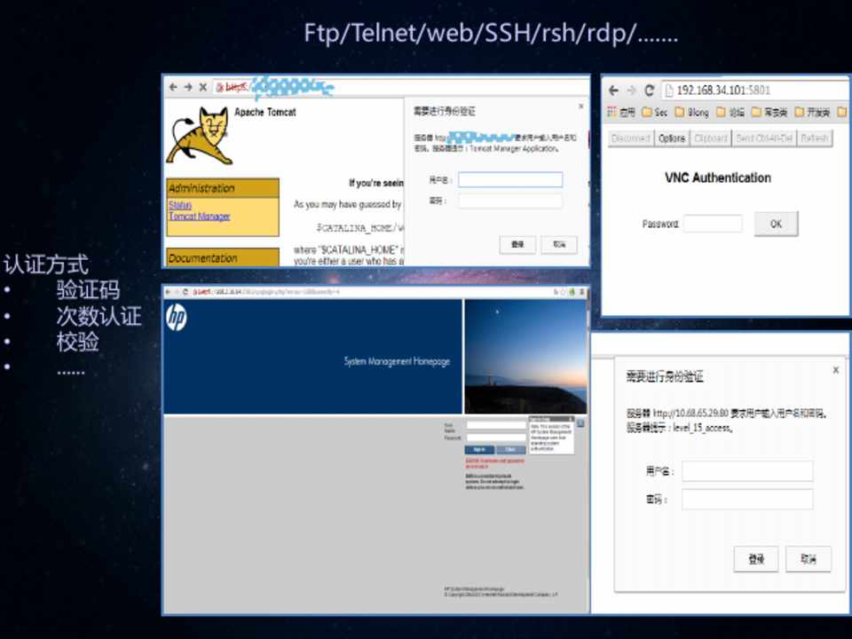 Ftp/Telnet/web/SSH/rsh/rdp/.......