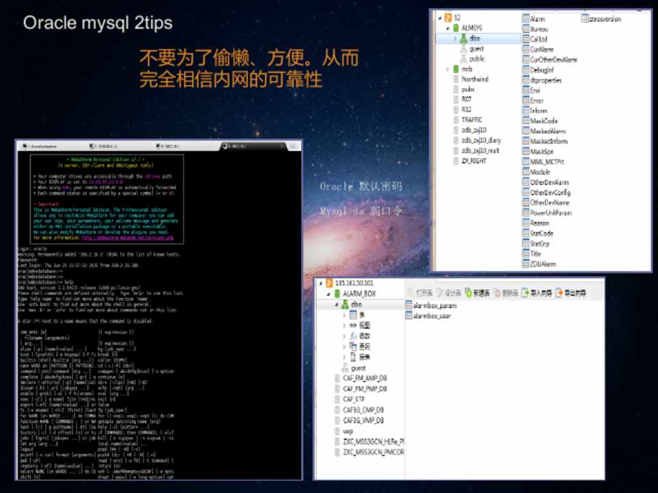 Oracle mysql 2tips 不要为了偷懒、方便。从而 完全相信内网的可靠性