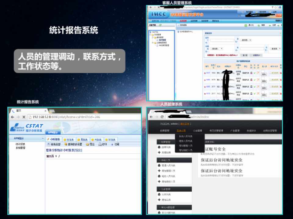 统计报告系统 人员的管理调动,联系方式, 工作状态等。