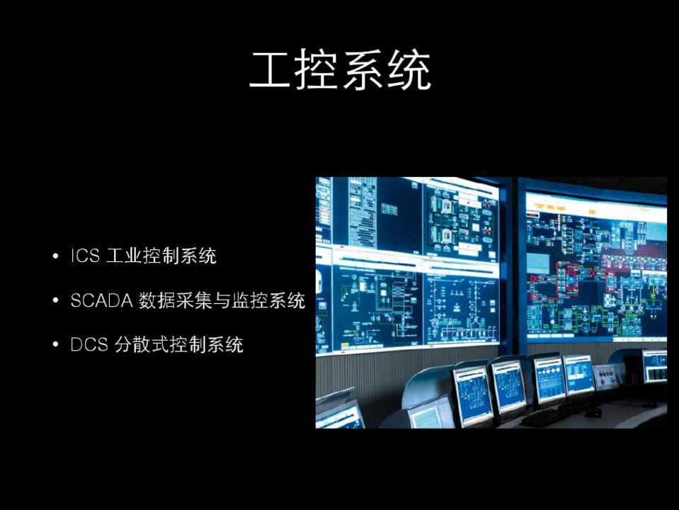 • ICS ⼯工业控制系统 • SCADA 数据采集与监控系统 • DCS 分散式控制系统