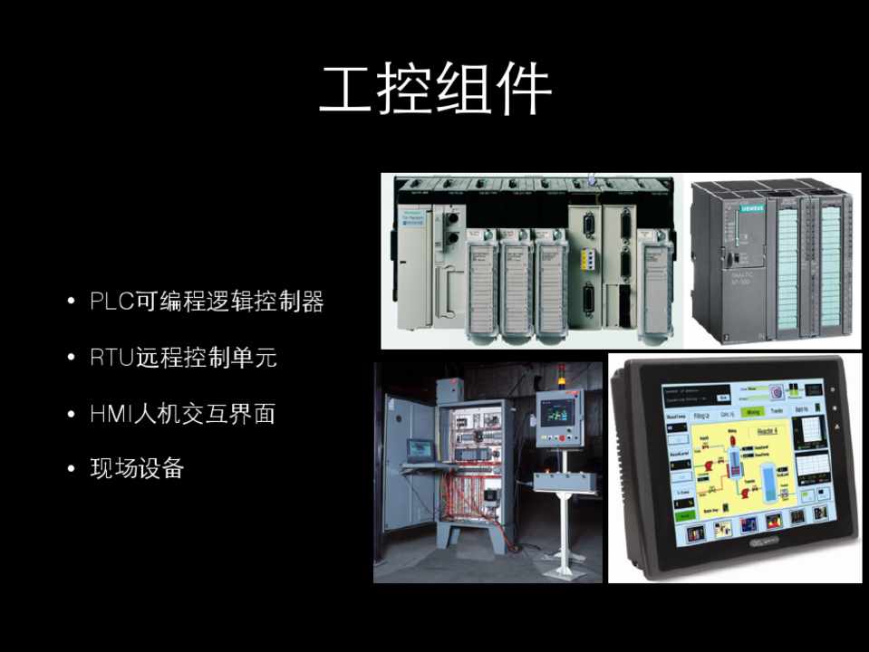 • PLC可编程逻辑控制器 • RTU远程控制单元 • HMI⼈人机交互界⾯面 • 现场设备