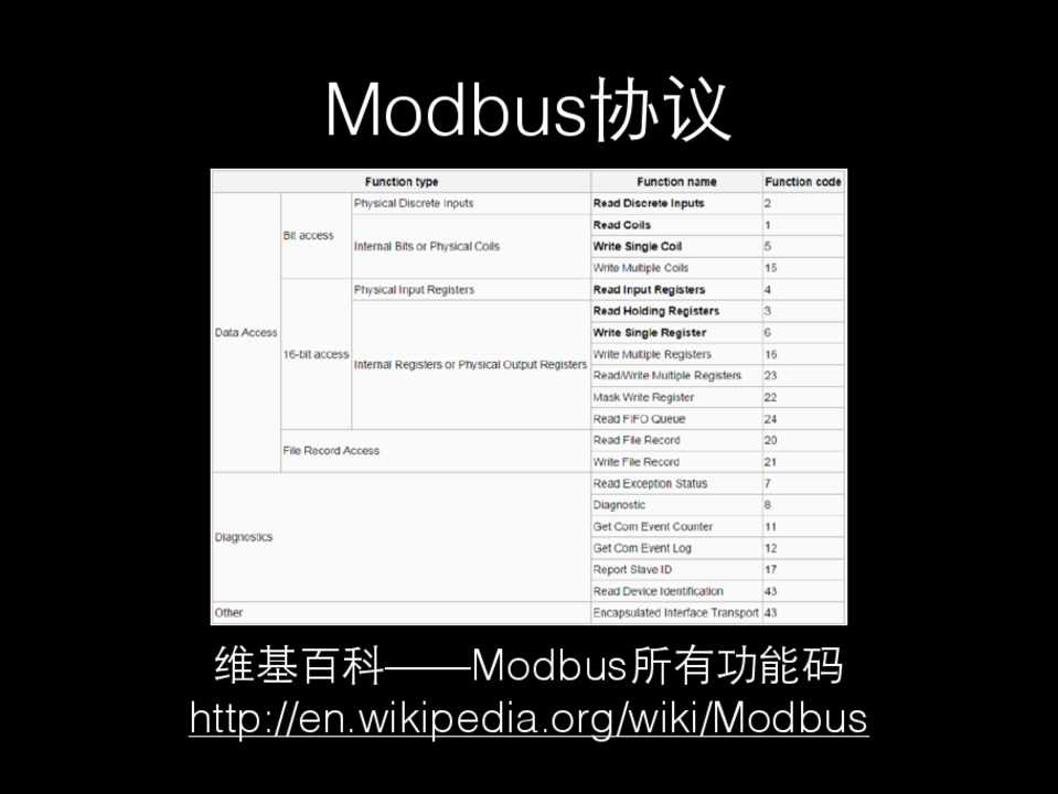 维基百科——Modbus所有功能码 http://en.wikipedia.org/wiki/Modbus