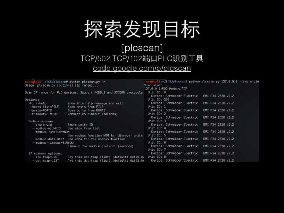 TCP/502 TCP/102端⼝口PLC识别⼯工具 code.google.com/p/plcscan