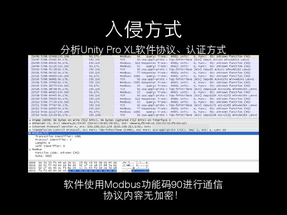 分析Unity Pro XL软件协议、认证⽅方式 通过90功能码进⾏行⾝身份识别与握⼿手请求、消息同步