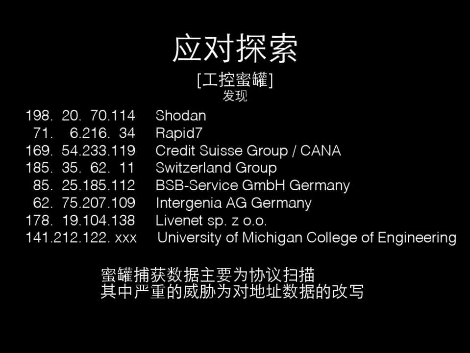 蜜罐捕获数据主要为协议扫描 其中严重的威胁为对地址数据的改写