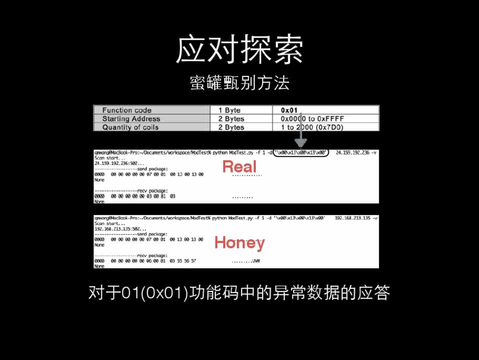 Honey 对于01(0x01)功能码中的异常数据的应答