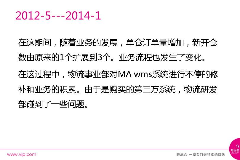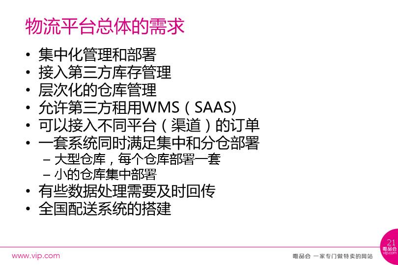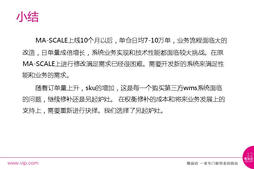 接入MA-SCALE系统,唯品会有独立的wms系统,满足单仓订单2-4w单