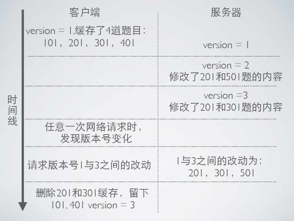 客户端 version = 1,缓存了4道题⺫⽬目: