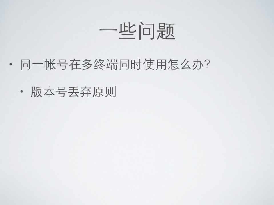 • 同⼀一帐号在多终端同时使⽤用怎么办? • 版本号丢弃原则