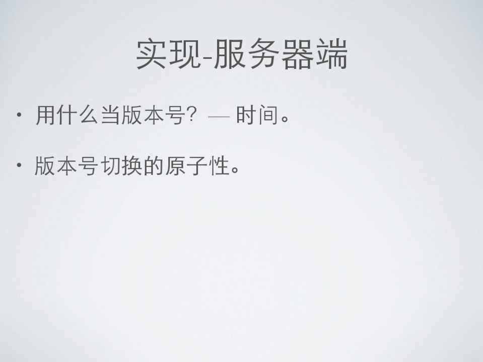 • ⽤用什么当版本号?— 时间。 • 版本号切换的原⼦子性。
