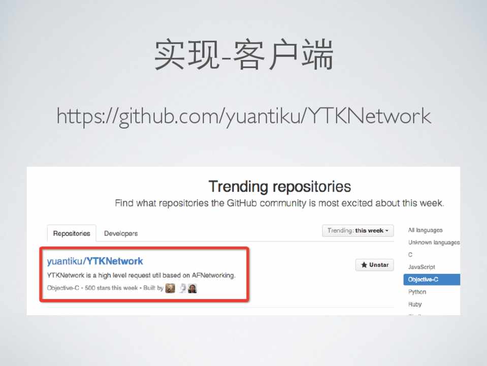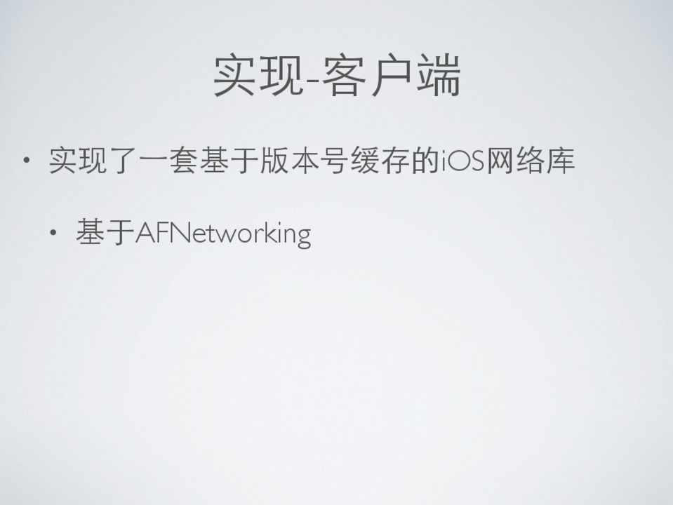 • 实现了⼀一套基于版本号缓存的iOS⺴⽹网络库 • 基于AFNetworking