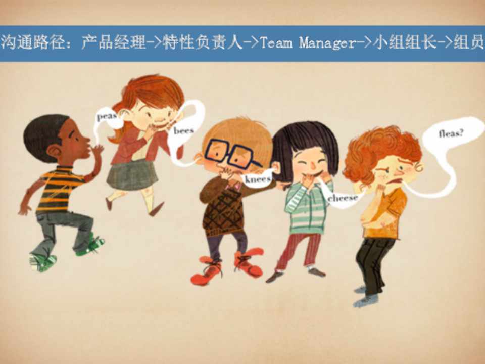 沟通沟路径通:产路品径经理舍->特近性求负责远人->Team Manager->小组组长->组员