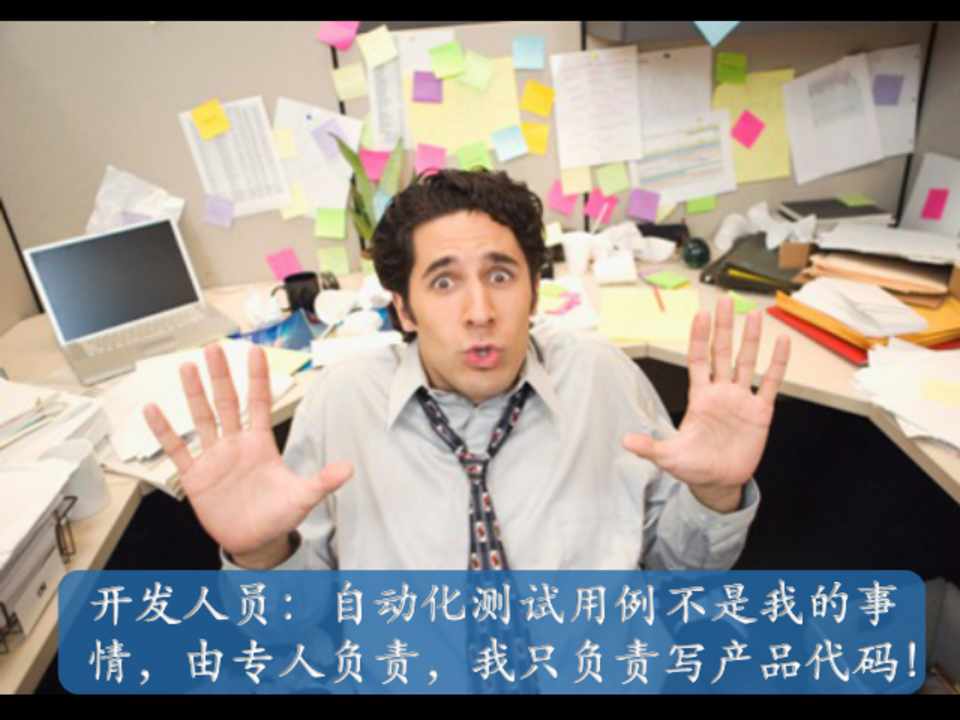 开发⼈人员:自动化测试用例不是我的事 情,由专⼈人负责,我只负责写产品代码!