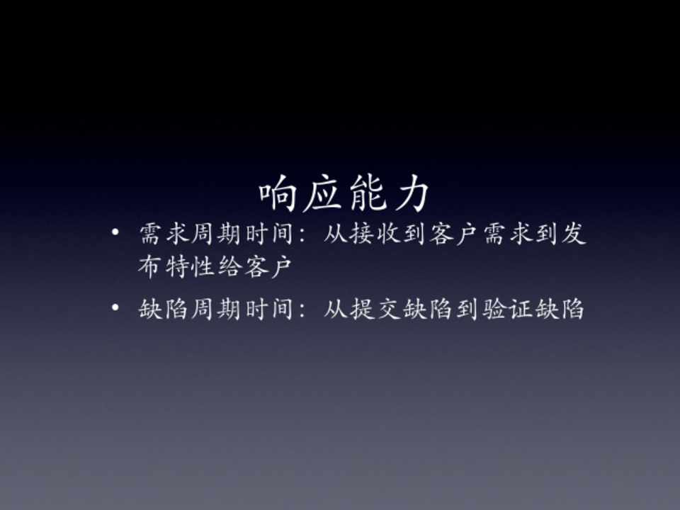 • 需求周期时间:从接收到客户需求到发 布特性给客户