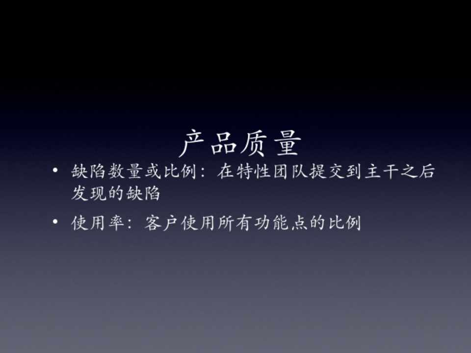 • 缺陷数量或比例:在特性团队提交到主⼲干之后 发现的缺陷