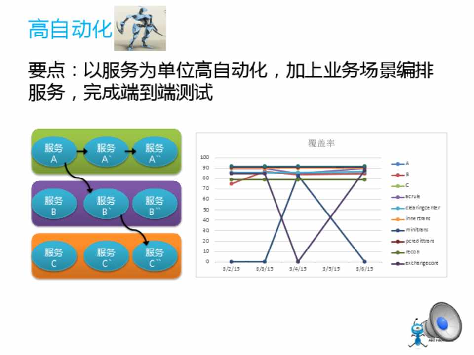 要点:以服务为单位高自动化,加上业务场景编排 服务,完成端到端测试