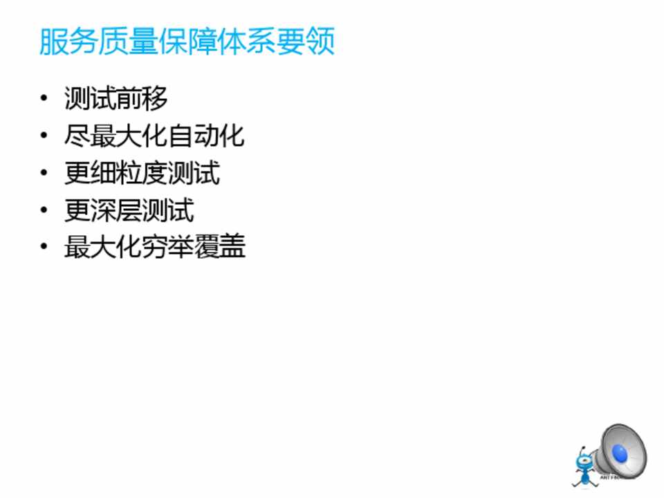 • 测试前移 • 尽最大化自动化 • 更细粒度测试 • 更深层测试 • 最大化穷举覆盖