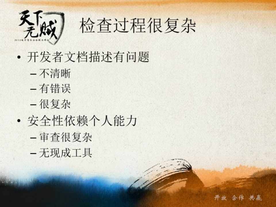 – 审查很复杂 – 无现成工具