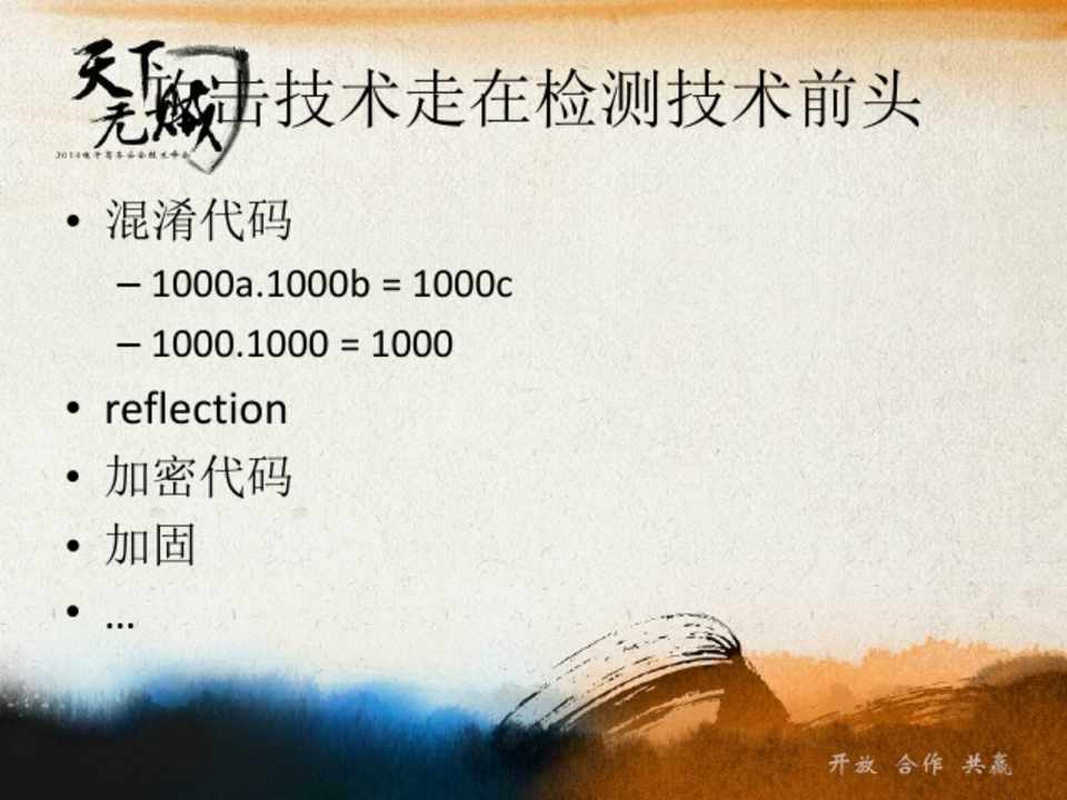 • reflection • 加密代码 • 加固 •…