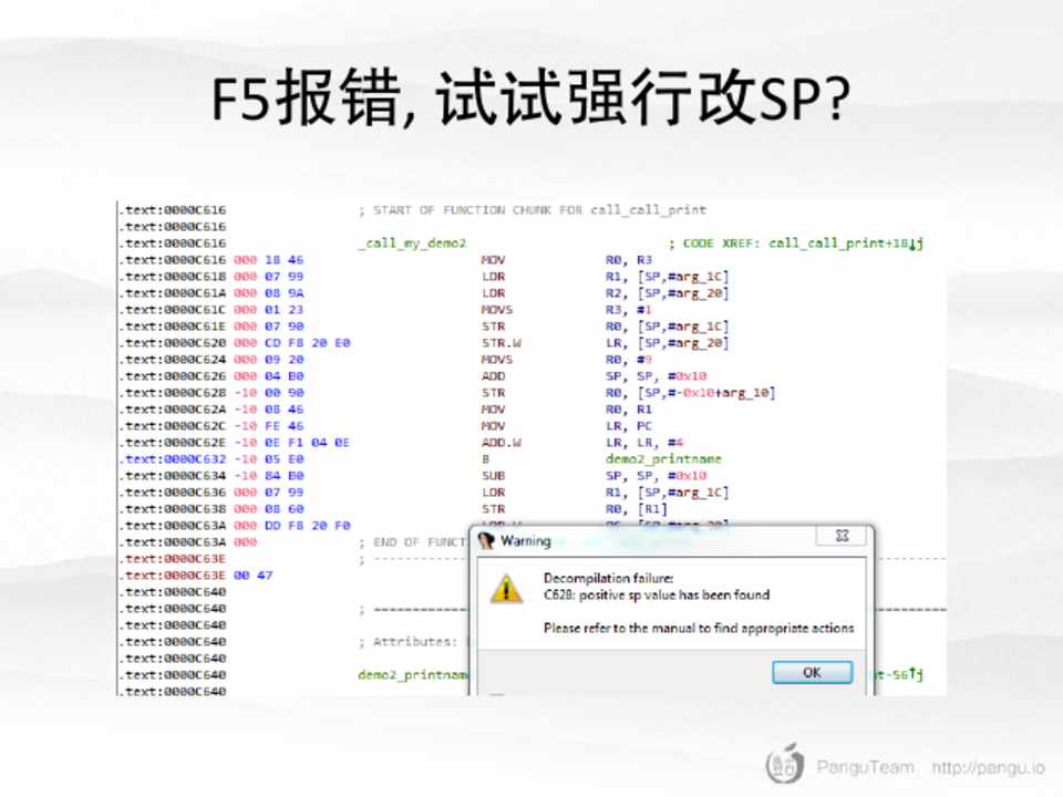 • 只要POP列表含有PC, 优先当成函数末尾. 手 动定义函数末尾后Hexrays依然不认账