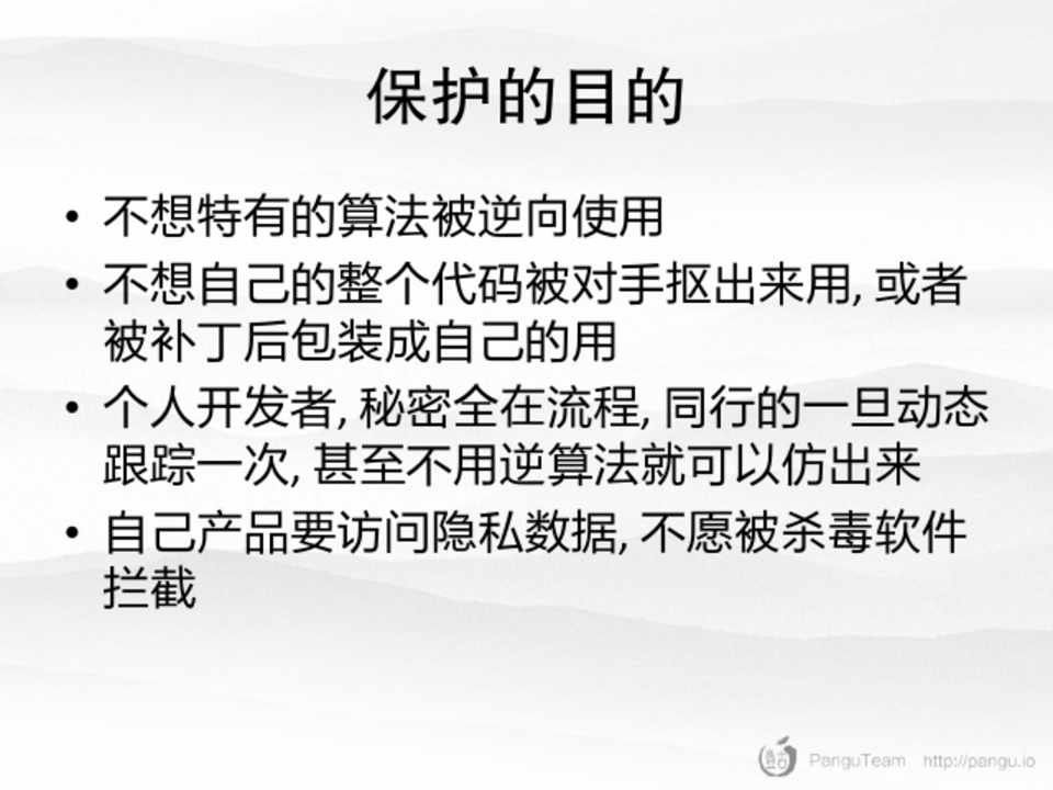 • 不想特有的算法被逆向使用 • 不想自己的整个代码被对手抠出来用, 或者
