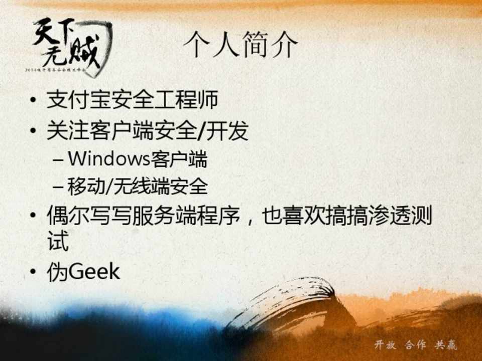 • 支付宝安全工程师 • 关注客户端安全/开发