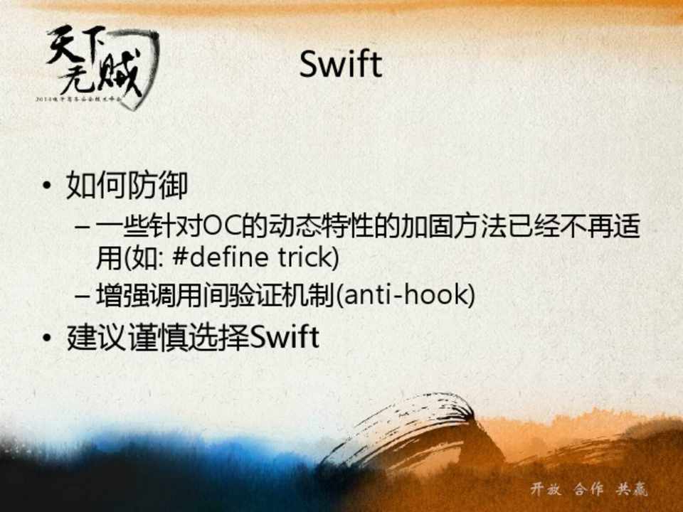 – 一些针对OC的动态特性的加固方法已经不再适 用(如: #define trick)