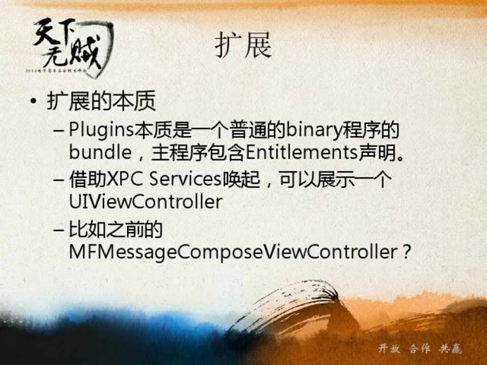 – 借助XPC Services唤起,可以展示一个 UIViewController