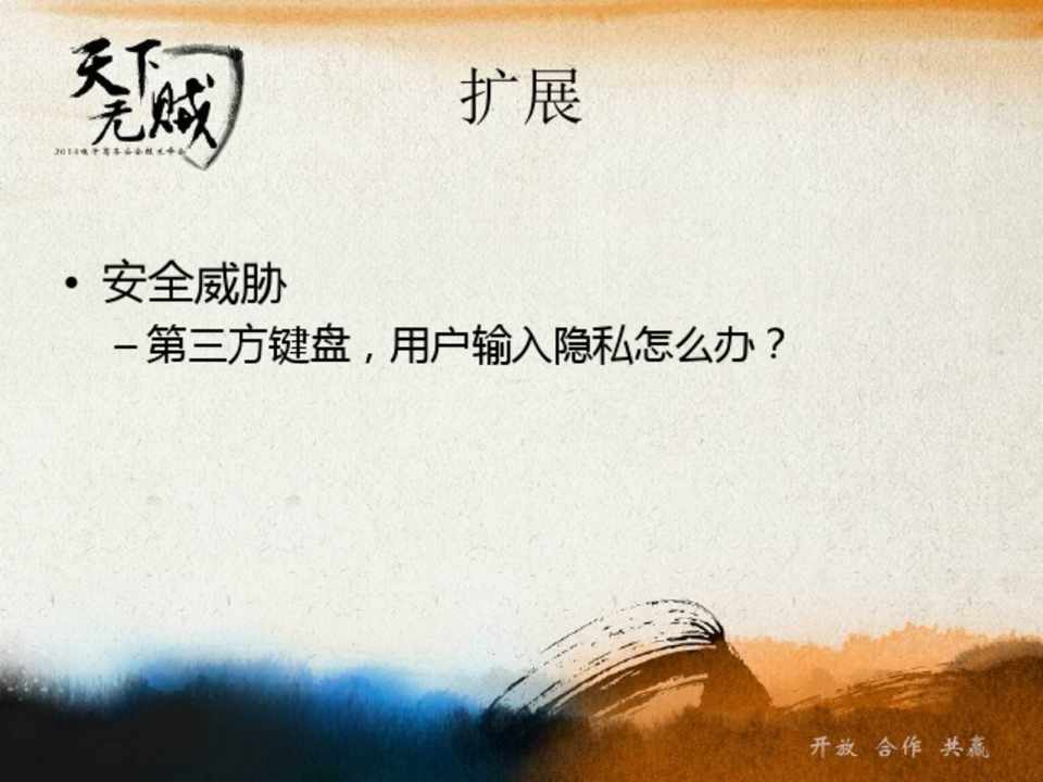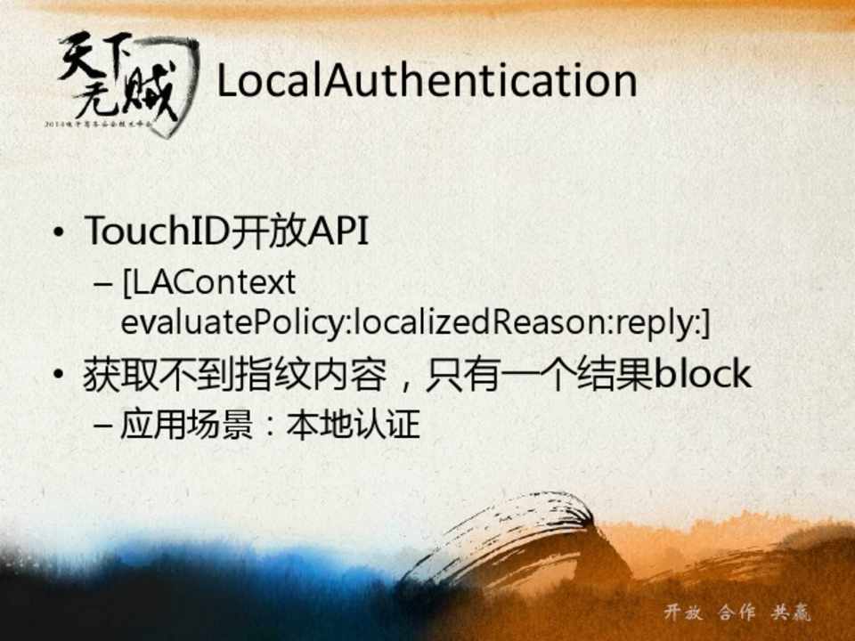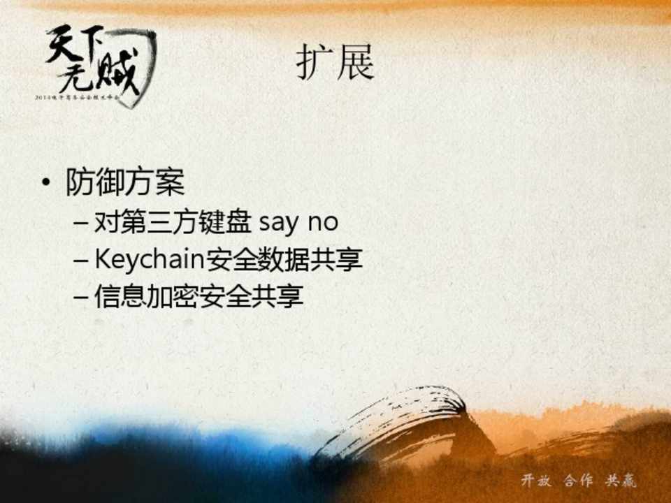 – 对第三方键盘 say no – Keychain安全数据共享 – 信息加密安全共享