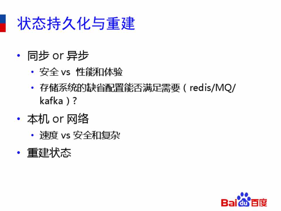 Ø 设计之前 Ø 可用与扩展 Ø 状态持久化与重建 Ø 读写比 Ø 一致性 Ø 保持简单