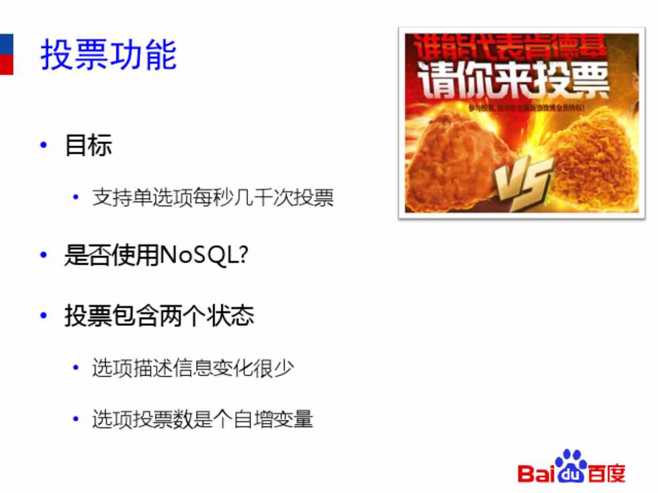 • 选项描述信息变化很少 • 选项投票数是个自增变量