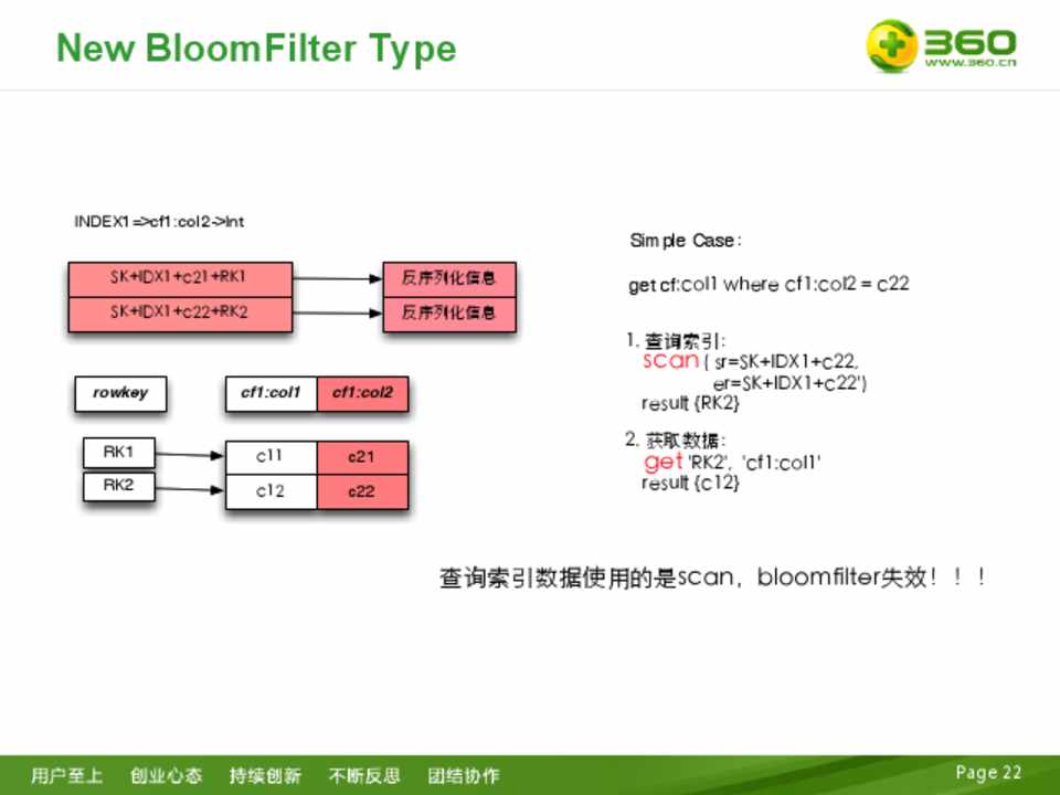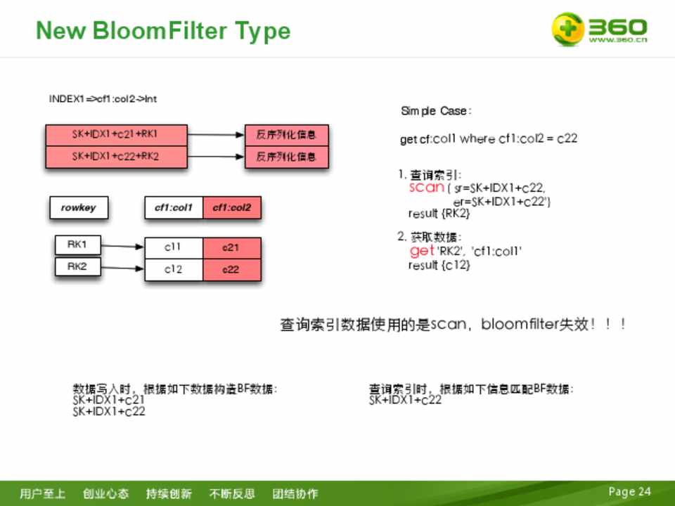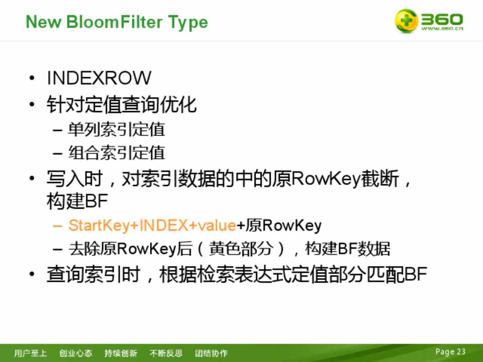 – StartKey+INDEX+value+原RowKey – 去除原RowKey后(黄色部分),构建BF数据