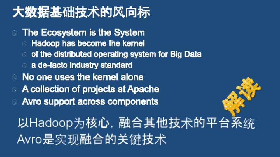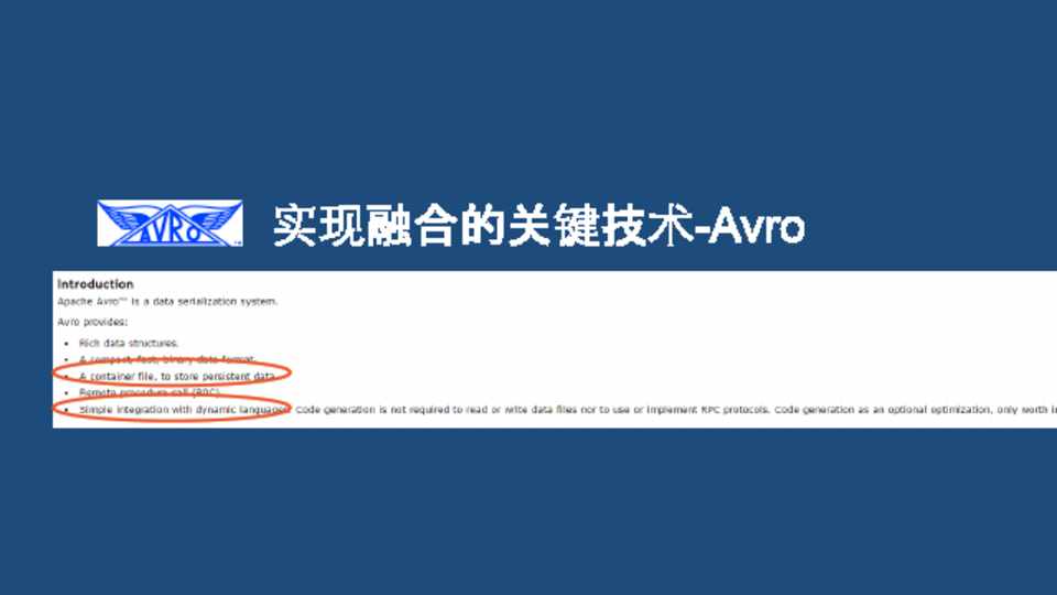 以Hadoop为核心,融合其他技术的平台系统 Avro是实现融合的关键技术