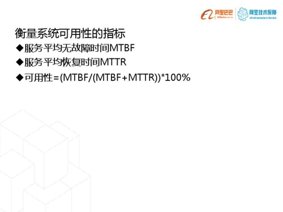 u服 务平均无故障时间MTBF u服 务平均恢复时间MTTR u可用性=(MTBF/(MTBF+MTTR))*100%
