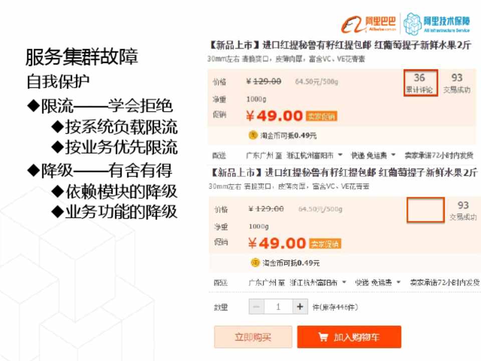 u按系统负载限流 u按业务优先限流 u降级——有舍有得 u依赖模块的降级 u业务功能的降级