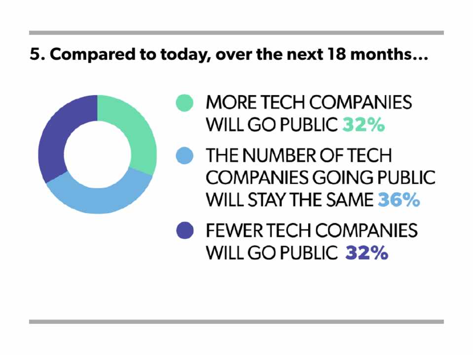 About a third of founders said there would be more IPOs next year, a third said fewer IPOs, and the last third said they thought things would stay pretty much the same. There doesn't seem to be a ton of clarity around this topic — even among late-stage companies, there's still no consensus.