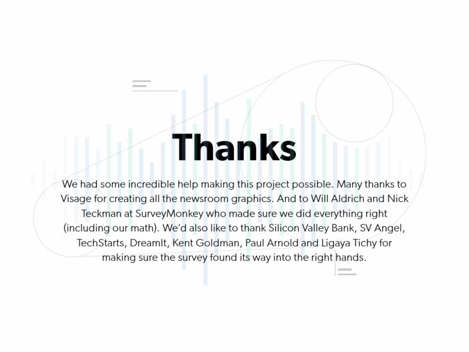 TechStarts, DreamIt, Kent Goldman, Paul Arnold and Ligaya Tichy for making sure the survey found its way into the right hands.